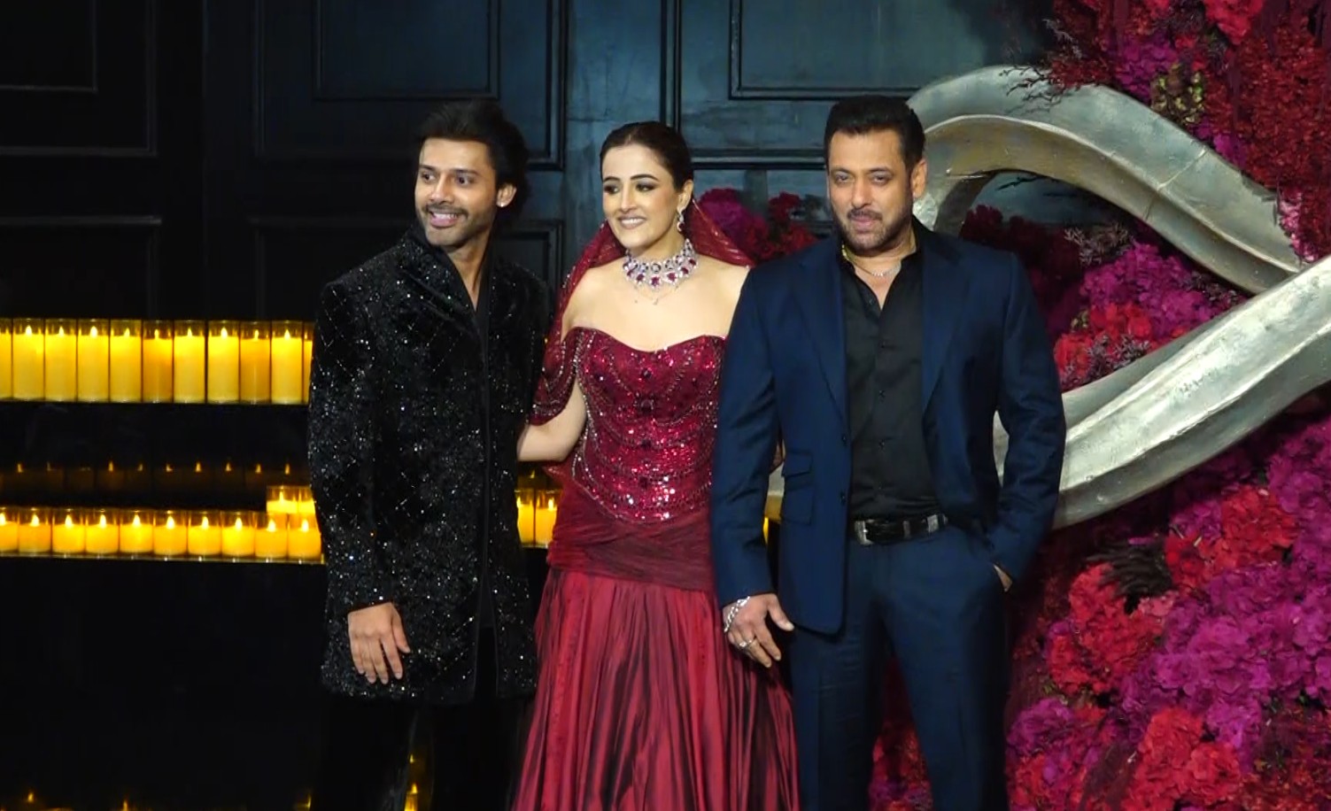 Mumbai (Maharashtra) [India], January 14 : Salman Khan added star charm to the wedding reception of singer Stebin Ben and actor Nupur Sanon, which took place on Tuesday night in Mumbai. Several film and TV stars attended the event, making it a grand evening.