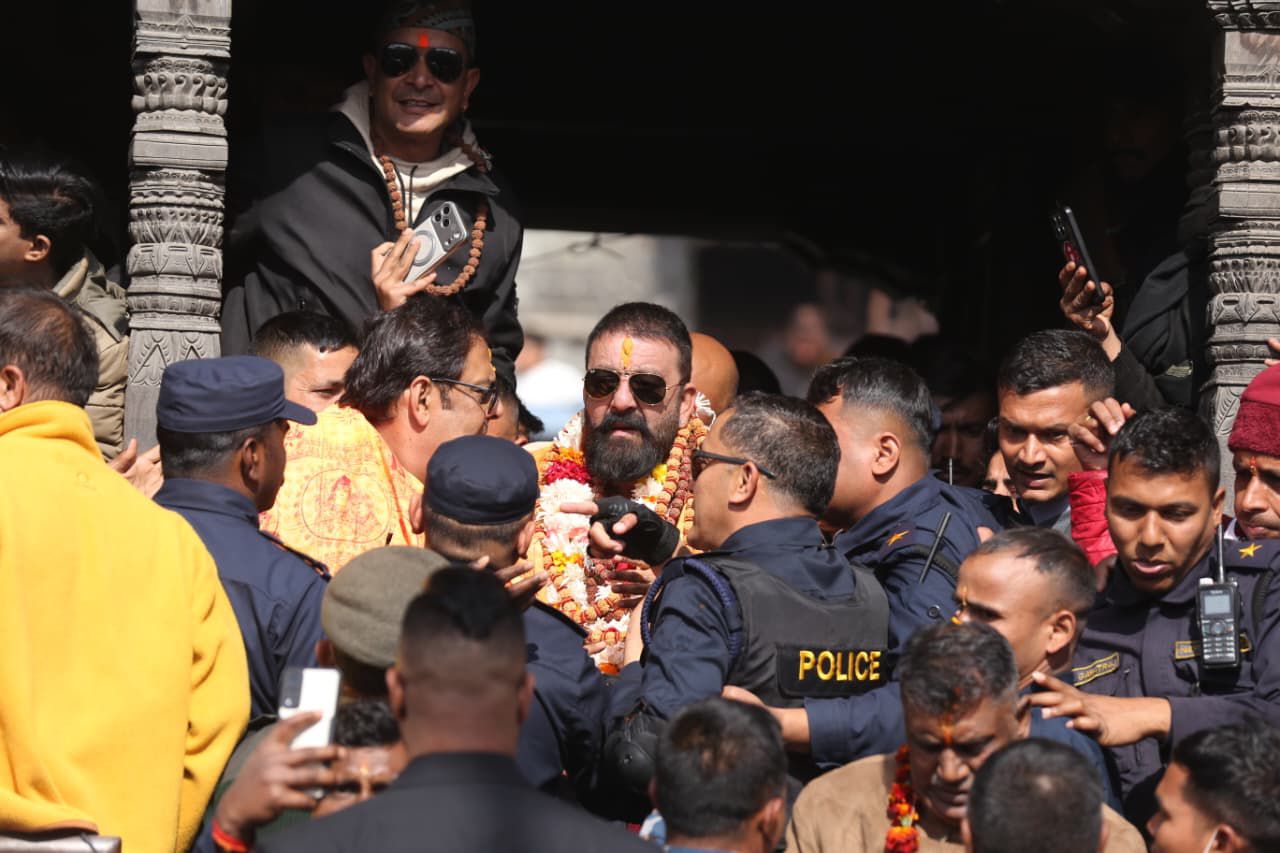 Several pictures from the site show the actor exiting the temple amid heavy security and a massive crowd of fans, who gathered to catch a glimpse of Dutt. For the visit, Sanjay Dutt was seen dressed in a simple white outfit as he emerged from the temple with prayer malas and a traditional 'angvastra' draped around him.
