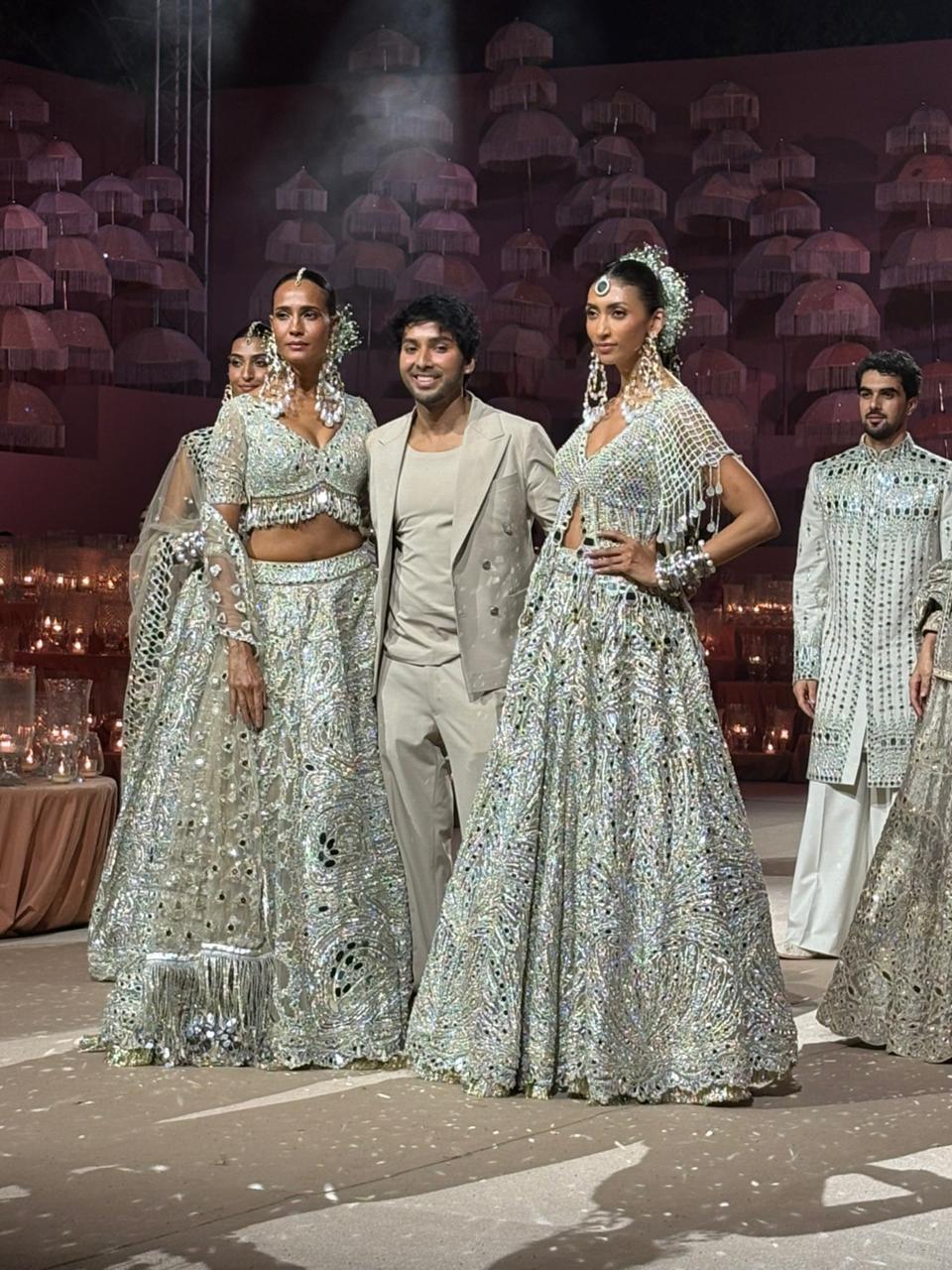 With prints expanding to watercolour washes, abstract interpretations, geometric repeats, and floral sketches, the collection saw embellishments layering richness into the outfits with pearl, sequin dori and kirkiri embroidery. Mishra's signature mirror work and gota took centrestage, glistening across bridal lehengas, flowing anarkaliis and contemporary separates.
