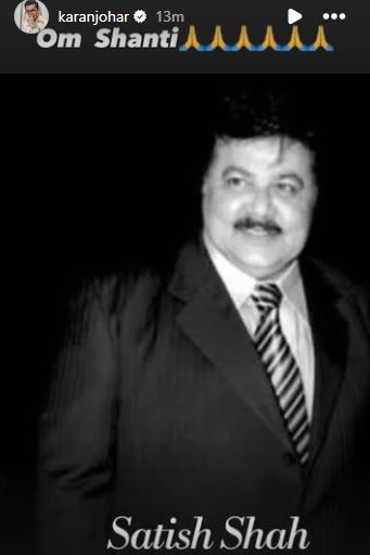 Following the news of the actor's demise, Bollywood director Karan Johar extended his condolences for Satish Shah on his Instagram handle.