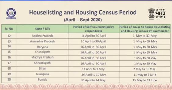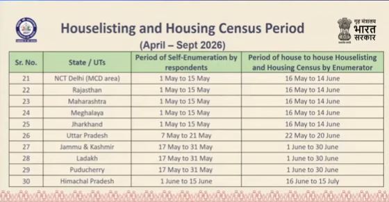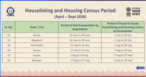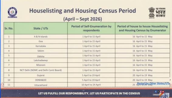 The Census for Ladakh and the non-synchronous snow-bound areas of the UT of Jammu and Kashmir and the States of Himachal Pradesh and Uttarakhand, the reference date will be 00.00 hours of October 1, 2026.