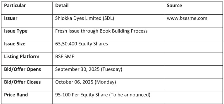 Shlokka Dyes Limited Announces IPO On BSE SME Platform Issue Open On 30th September & Closes On 6th October 2025