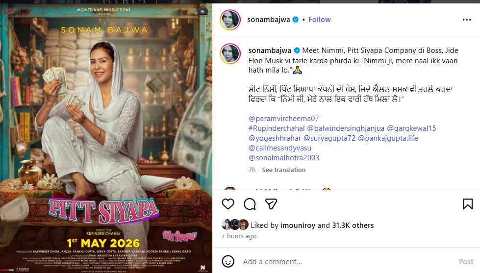 Sonam Bajwa's Punjabi film 'Pitt Siyapa' to be released on May 1