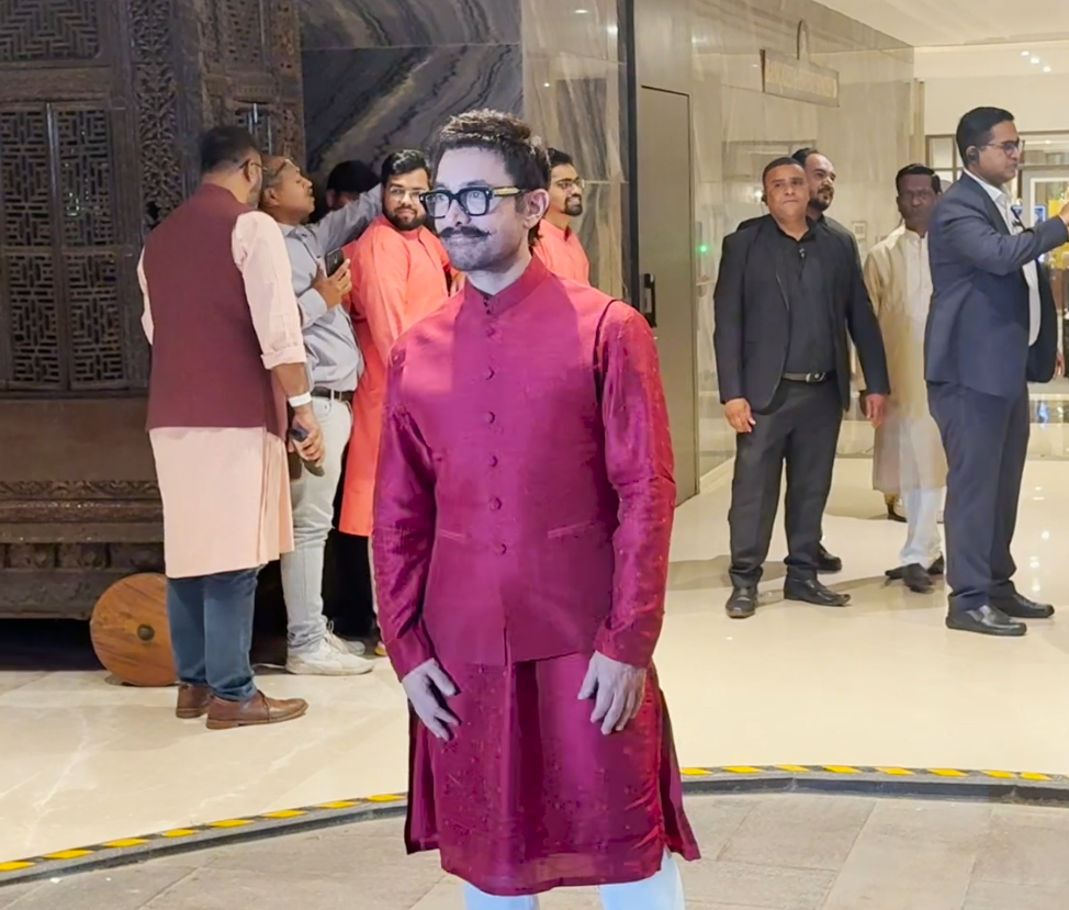 Aamir Khan was also seen at the wedding. The 'Lagaan' actor arrived at the venue dressed in a red kurta with white pyjamas. He greeted photographers briefly before heading inside the venue.