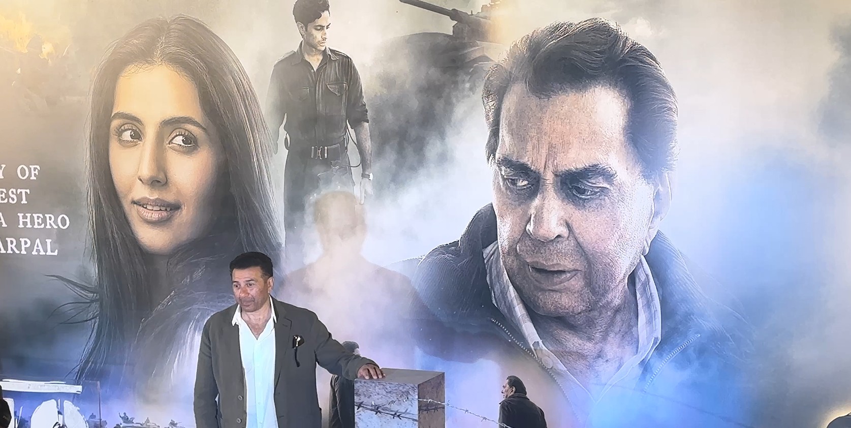 Sunny Deol stands beside his father Dharmendra's photo at screening of 'Ikkis'