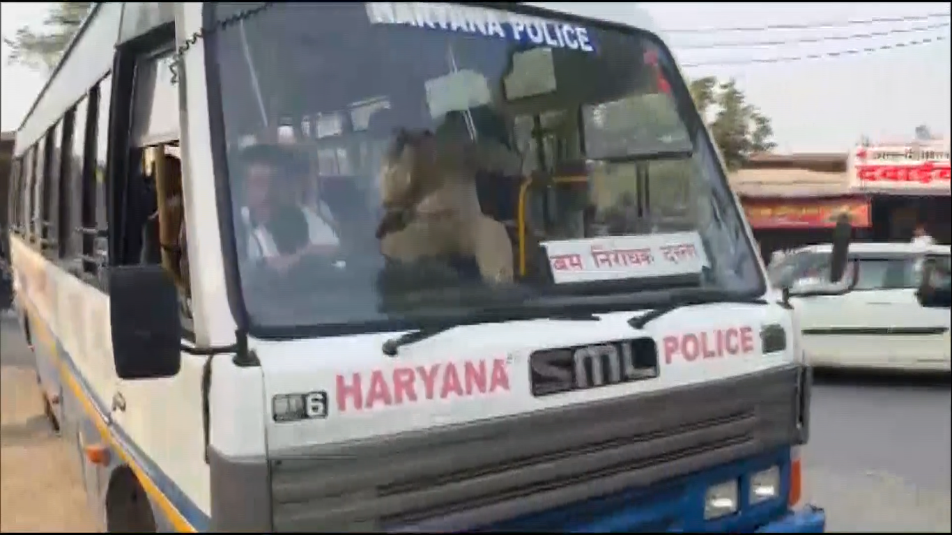Later, a Haryana Police vehicle marked "Bomb Disposal Squad," carrying several personnel, entered the campus shortly after the alert was raised.