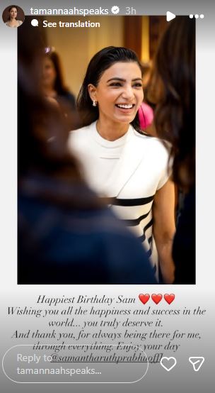 Tamannaah Bhatia wishes " happiness", "success" to Samantha Ruth Prabhu on her birthday
