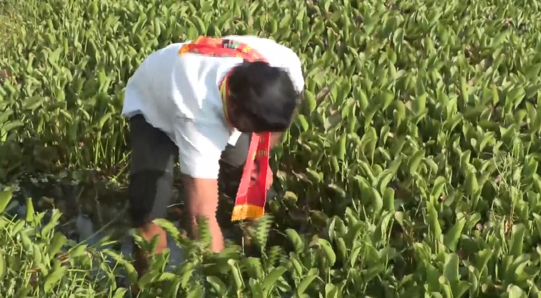 Tiruchirappalli (Tamil Nadu) [India], March 27 : Naam Tamilar Katchi (NTK) party candidate from the Thiruverumbur constituency, Jallikattu Rajesh, on Friday began his campaign by participating in the cleaning drive of hyacinth in the Mavadi Kulam lake.