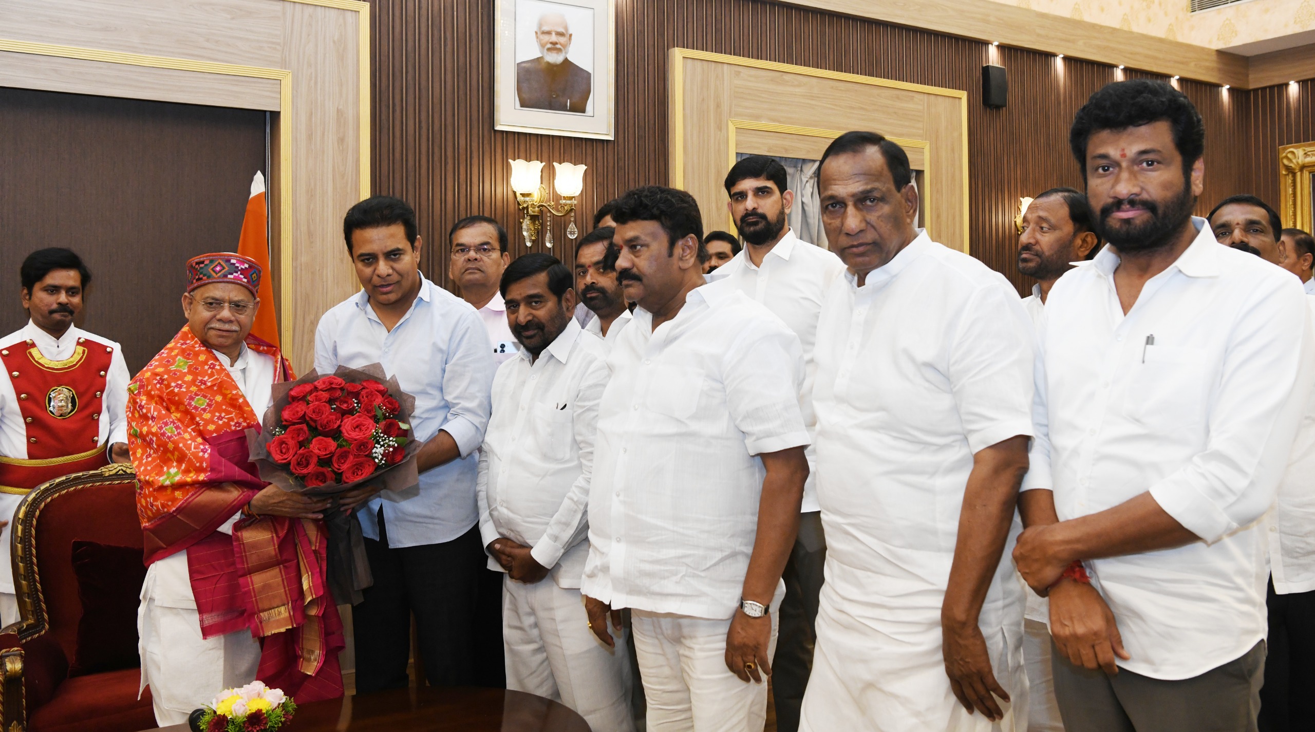 "We have sought three things from the Governor - we sought the dismissal of the Revenue Minister from the Council of Ministers, we also sought the Governor's intervention into establishing an independent inquiry headed by a High Court sitting judge, we sought the Governor to intervene and look into these matters and seek more information from the Govt, on illegal mining in the state of Telangana. We have also reminded the Governor of the emergency during Indira Gandhi's time - of those oppressive regimes and a similar regime is again at play in Telangana today...We have requested him to intervene and send a very strong message to the State Council of Ministers," KTR said.
