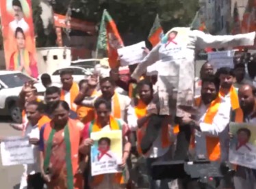 Telangana ST Morcha stages protest against Mamata Banerjee over protocol lapse in President Murmu's Bengal visit