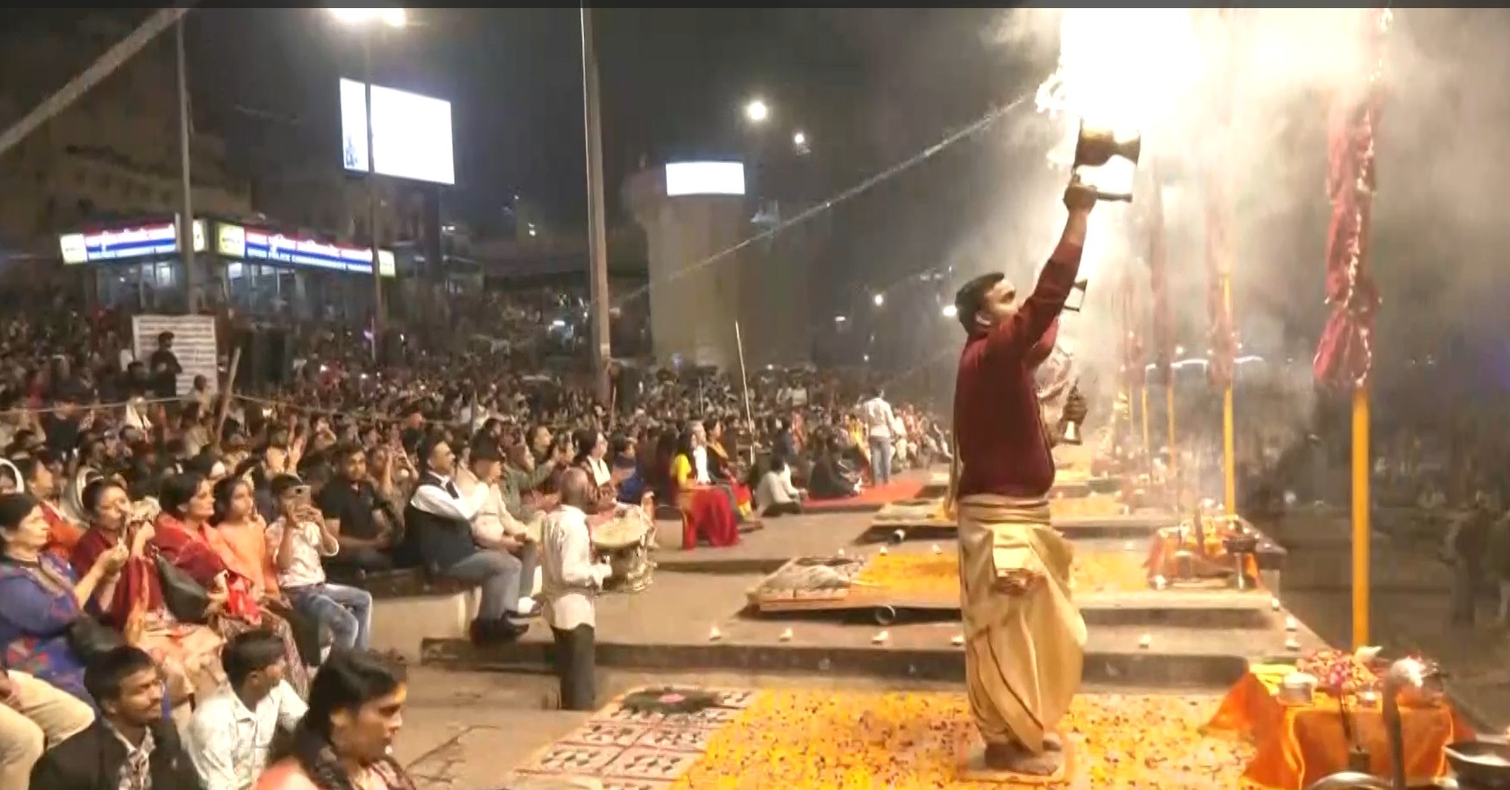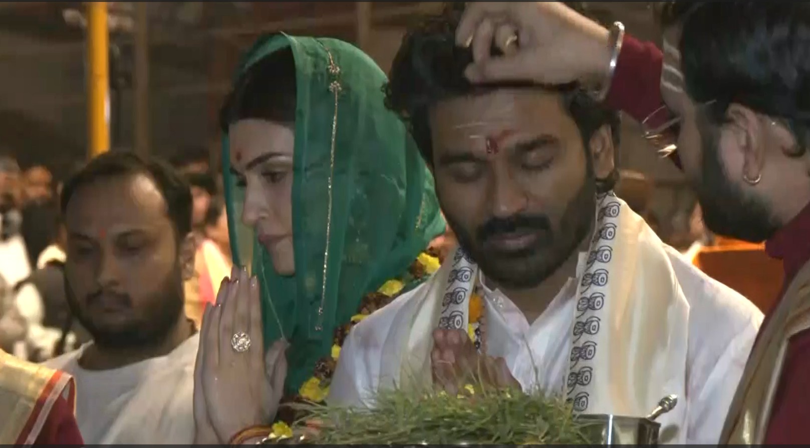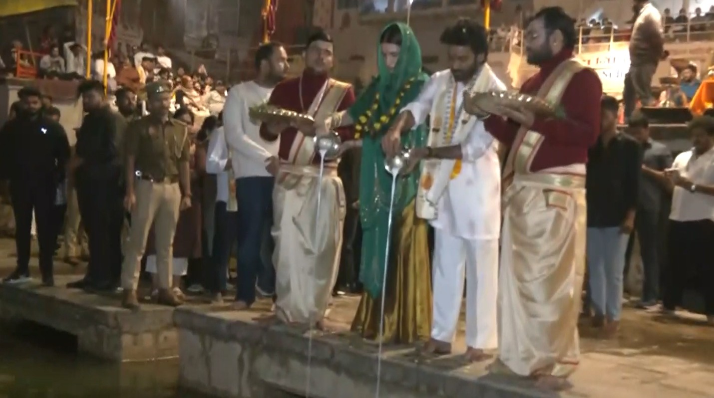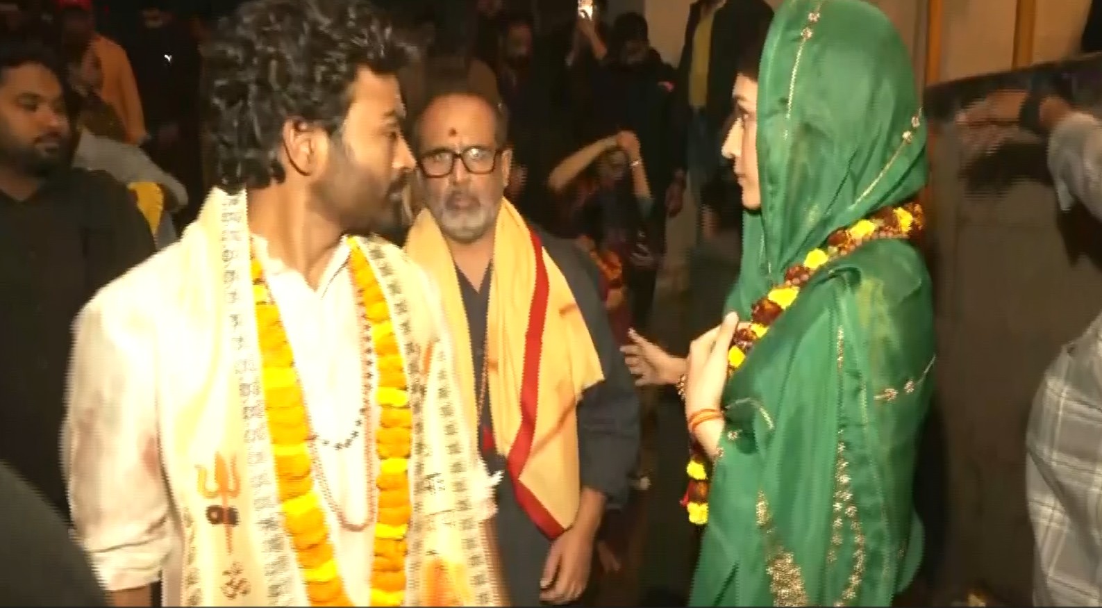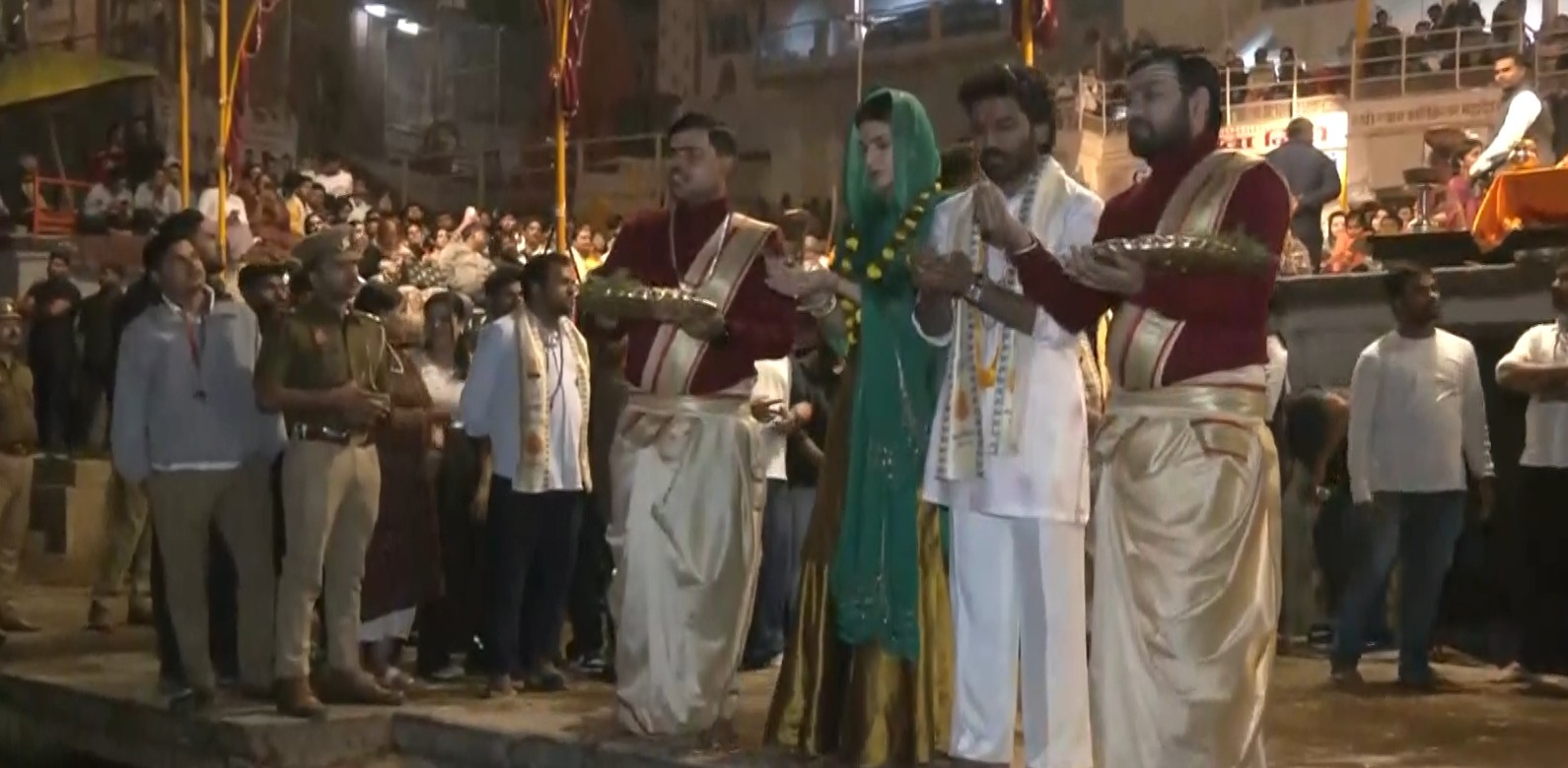Varanasi (Uttar Pradesh) [India], November 26 : Ahead of the release of their upcoming film 'Tere Ishk Mein', actor Dhanush and actress Kriti Sanon performed the Ganga Aarti at Dashashwamedh Ghat in Varanasi, drawing a massive gathering of fans who turned their visit into a festive spectacle.