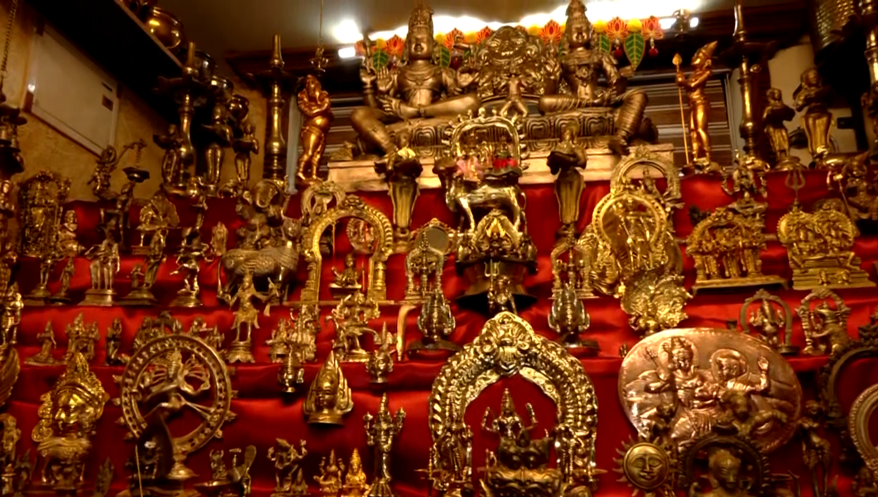 The display is not limited to clay idols. It also includes figurines made of panchaloha (five metal alloy), brass, and copper.