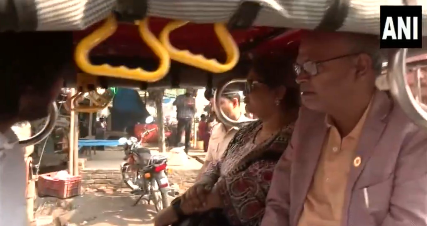 "This is festival of democracy": Congress' Rajesh Ram arrives at polling booth in e-rickshaw to cast vote