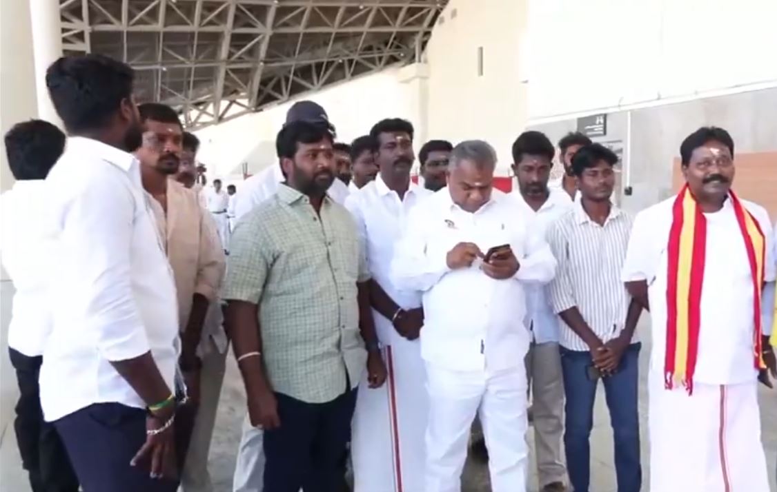 With a TVK carcade present at Tiruchirappalli Airport, party cadres await the arrival of party president Vijay.