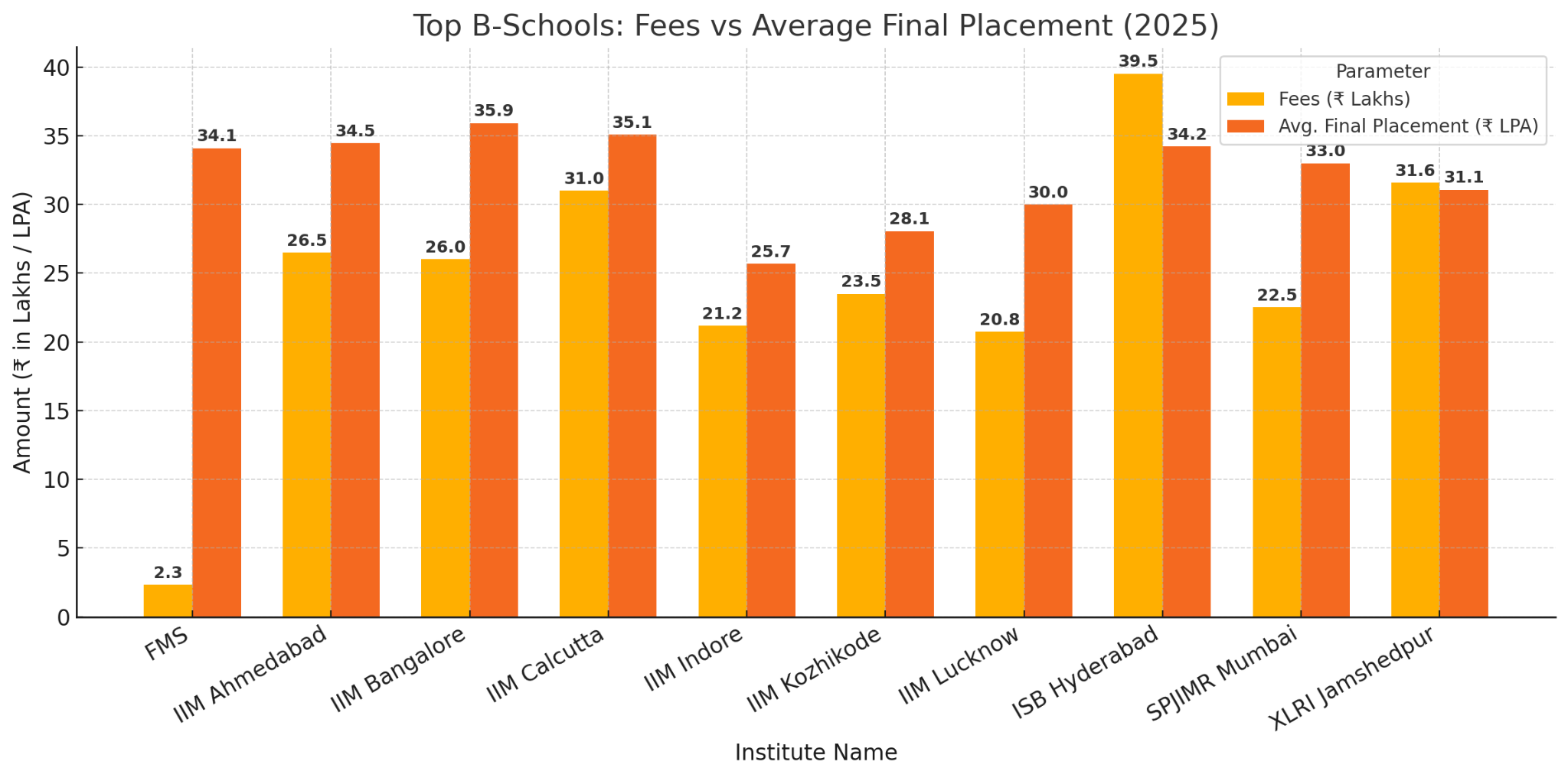 From FMS Delhi's affordable MBA fees to ISB Hyderabad's placement records, the list showcases how top B-schools balance the ROI of students.
