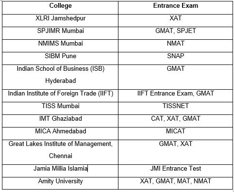 Here's a snapshot of the most significant MBA institutions that do not require CAT scores. These universities take GMAT, XAT, NMAT, CMAT, MICAT, and CET tests as valid for admission.