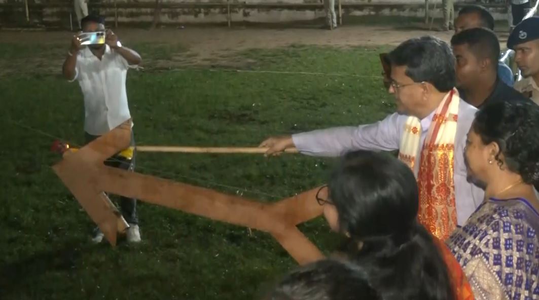 Agartala (Tripura) [India], October 4 : For the first time in Agartala, the Ravana Dahan ceremony was held on Thursday at BT College ground to mark Vijaya Dashami, drawing a large crowd. Chief Minister Manik Saha inaugurated and led the symbolic burning of Ravana, celebrating Lord Rama's victory over evil.
