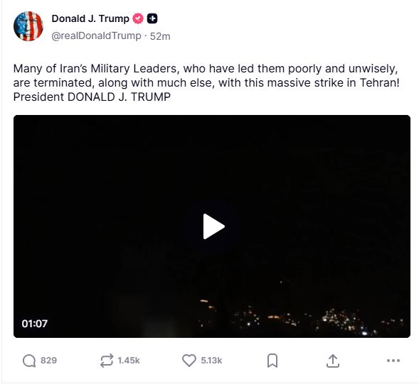 In his statement, Trump noted, "Many of Iran's Military Leaders, who have led them poorly and unwisely, are terminated, along with much else, with this massive strike in Tehran!"