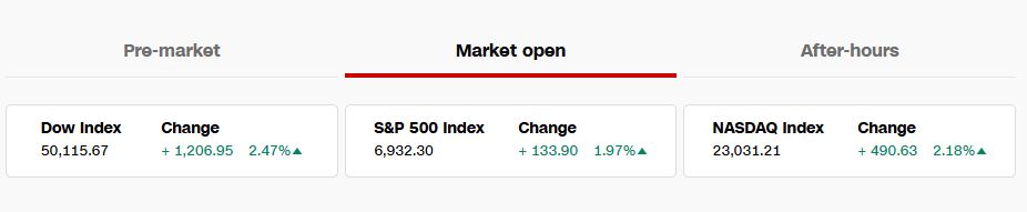 Trump's remark comes after key US stock market indices- Dow Jones Futures, S&P 500 and Nasdaq showed positive ratings according to CNN Business.