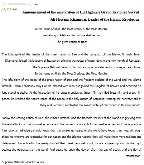 On his death, Iran's Supreme National Council also issued a statement sharply criticising the US and Israel.
