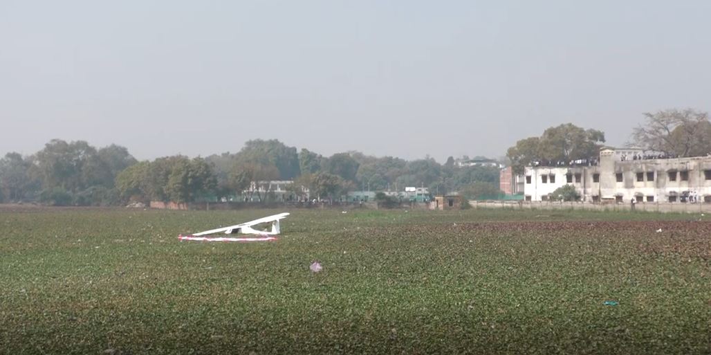 UP: Crew safe after IAF Microlight Aircraft makes emergency landing into pond in Prayagraj