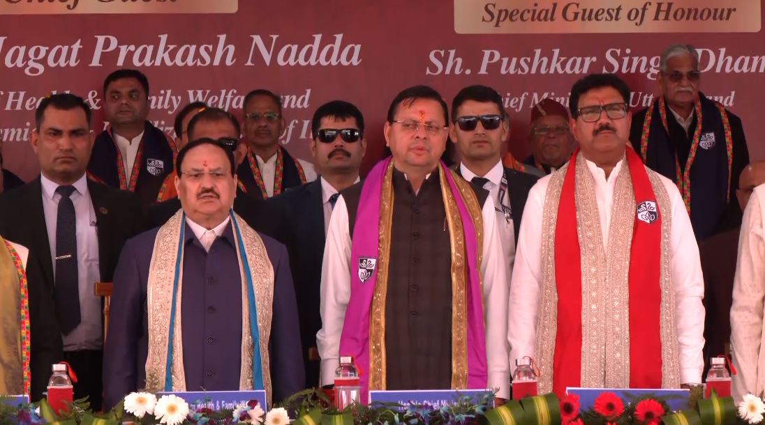 Dehradun (Uttarakhand) [India], February 14 : Uttarakhand Chief Minister Pushkar Singh Dhami and Union Health Minister Jagat Prakash Nadda on Saturday attended the 8th Convocation Ceremony of Swami Rama Himalayan University at Jolly Grant, Dehradun.