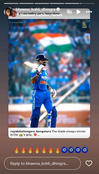Bhawna, on the other hand, shared several pictures of Virat from the match.