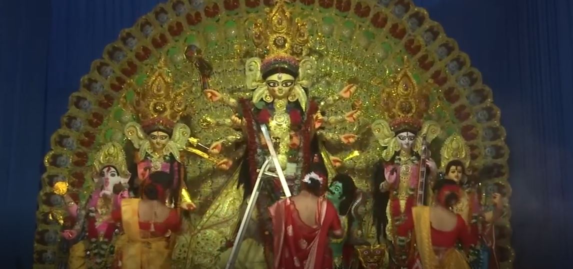 Sindoor Khela is celebrated by women applying vermilion to the idol and then smearing it onto one another, and marks the end of the five-day Durga Puja.
