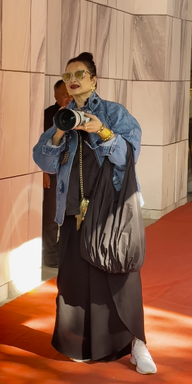 While Asha Parekh and Waheeda Rehman were dressed up in traditional sarees, Rekha opted for a cool black outfit that she paired with a blue denim jacket. Rekha was in fun mood as she chatted with the paparazzi and happily posed for photos. At one point, she even slipped into photographer mode, playfully picking up a pap's camera and showing off her own flair behind the lens.
